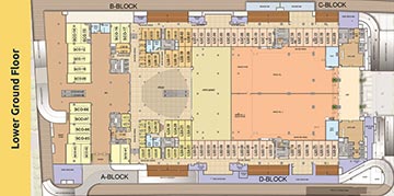 21 Shuttle lifts with five star lobbies for office and hotel users.